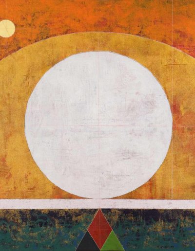 The Elemental Series is a body of abstract paintings rooted in the fundamental shapes of the triangle, circle, and square. Each work deliberately avoids representation and narrative — a conscious response to the relentless negativity and noise of contemporary media. In stepping away from storytelling, I wanted to return to something more universal and enduring; the pure aesthetics of form, structure, and the tactile qualities of paint itself.