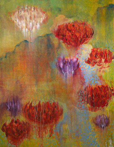 After taking several years off from painting, I have returned to the canvas. The time away has allowed me to go within deeply, while exploring the more easily accessible medium of photography and collage. I needed to address and face my sudden move back to Canada after living and working in Hong Kong for 27 years. I wanted my work, namely paintings, to reflect this change. Elysium is the start of this new journey.