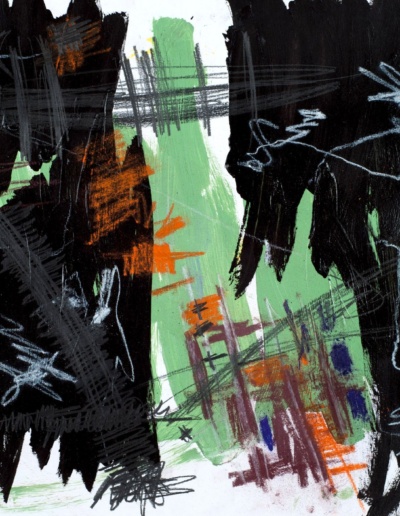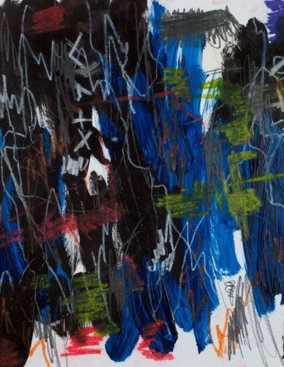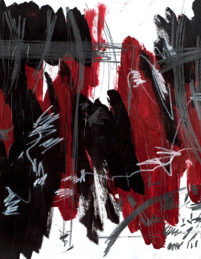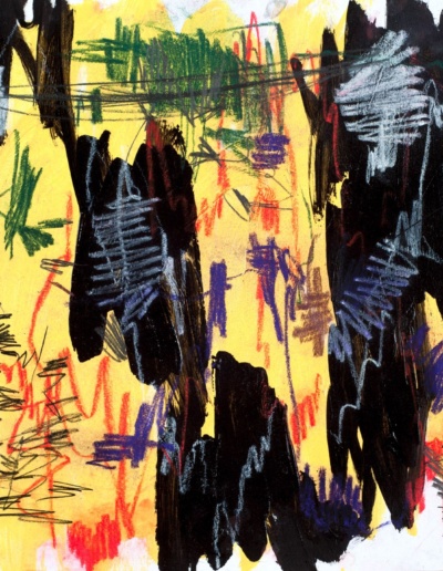 Hard:Rewired is a reactionary creation of artwork that I was compelled to do after being bitten by a dog. I found refuge in executing a more aggressive approach using the medium of paper and wood. The style is reminiscent of Basquiat's heavy-handed graffiti marks and Cy Twombly's whimsical yet restrained scratches.