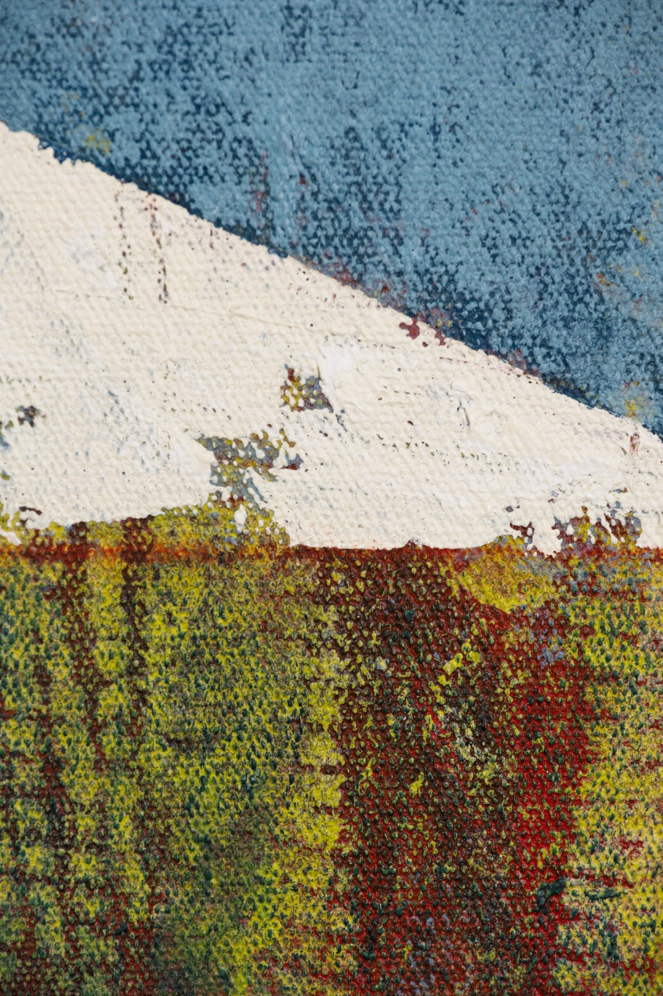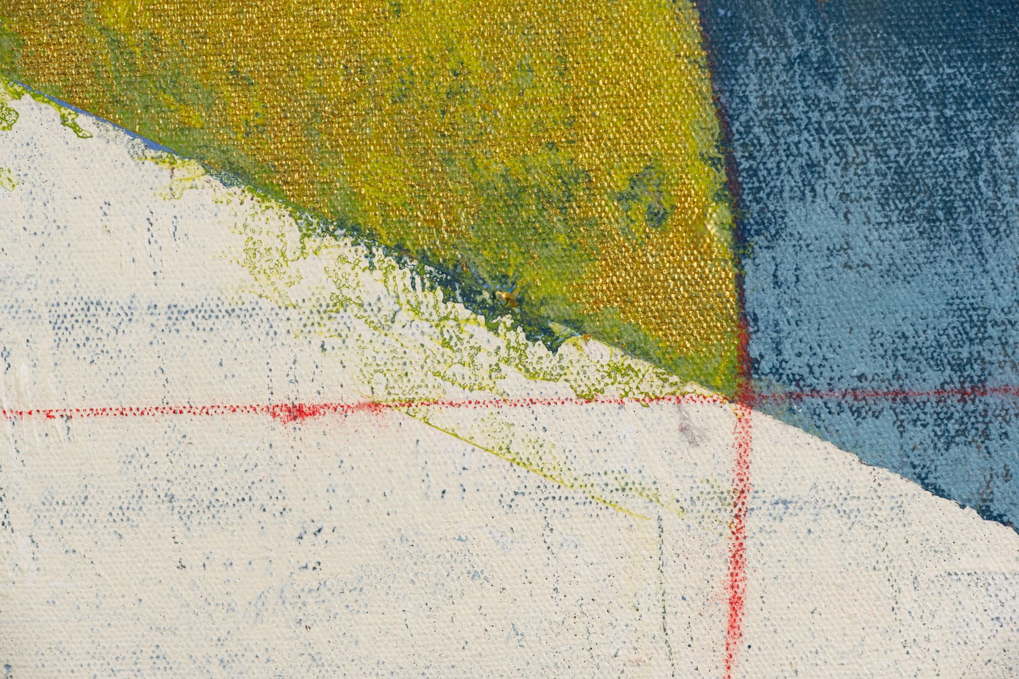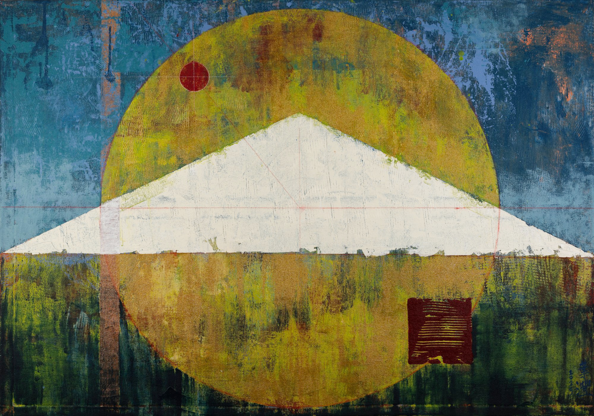Elemental, No. 1 is an abstract painting built from the simplest geometric forms—triangle, circle, and square. It deliberately avoids representation or narrative, focusing instead on the pure aesthetics of form, composition, and the physical presence of paint. Traditional brushes were set aside in favour of kitchen towels and adhesive spreaders, a conscious choice to break away from familiar habits. This shift in process became a way of distancing myself from the work, creating space for the painting to emerge on its own terms: intuitively and organically. In doing so, I sought not to impose meaning, but to allow the piece to reveal itself gradually, both to me and to the viewer.
