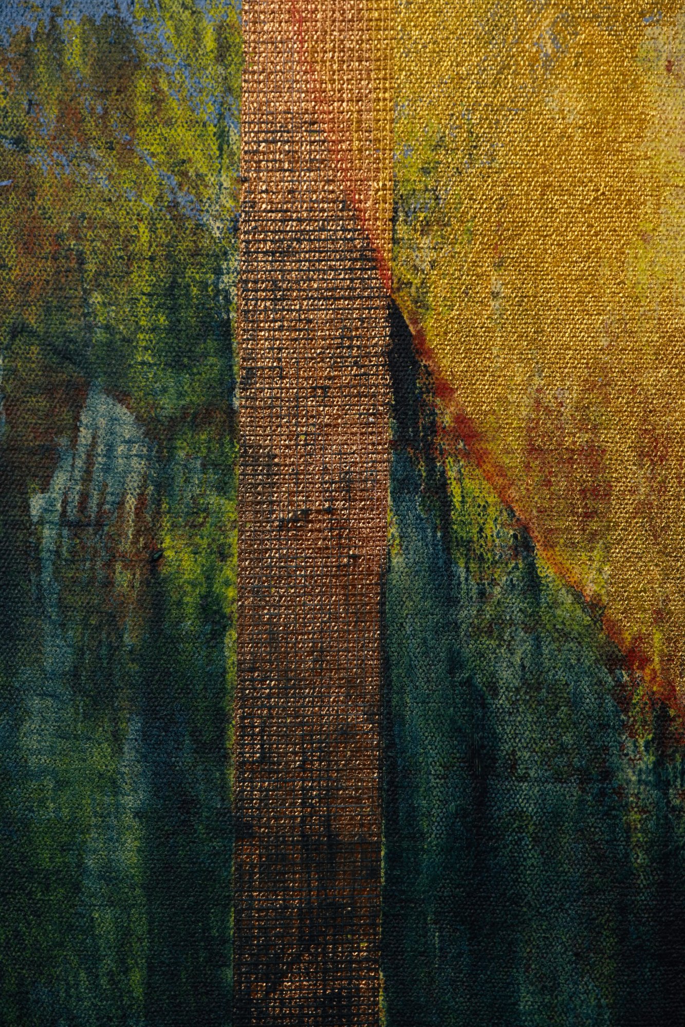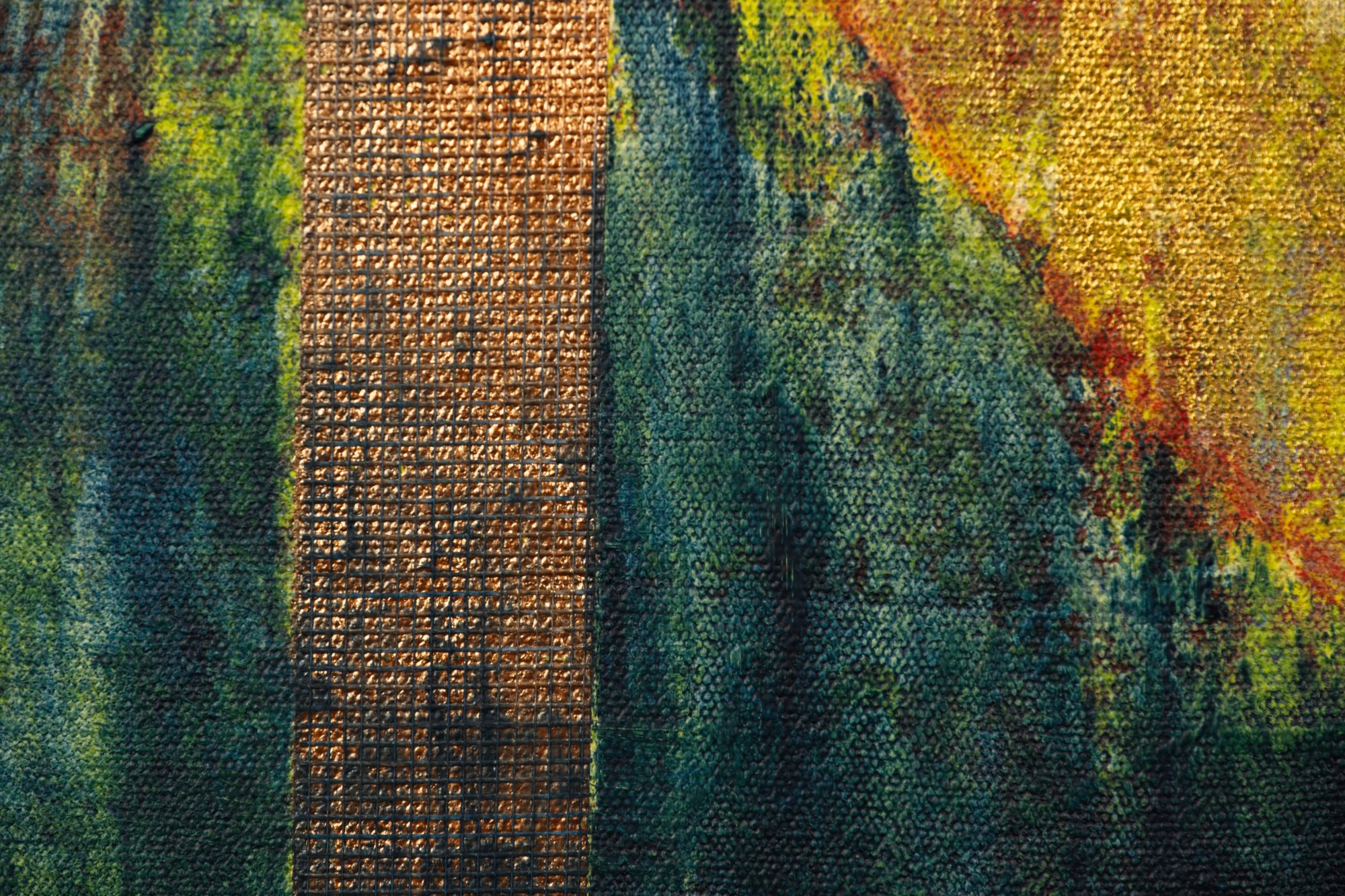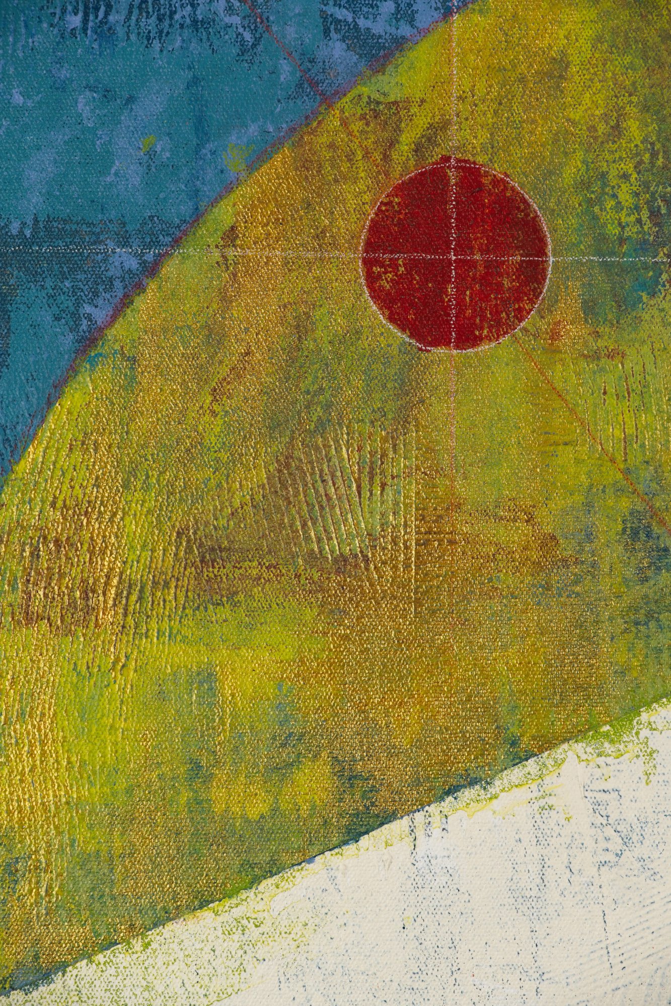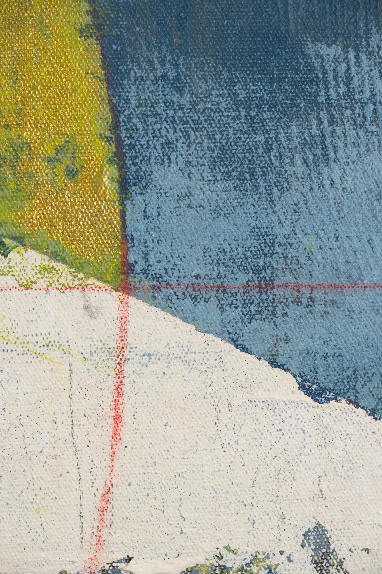 Elemental, No. 1 is an abstract painting built from the simplest geometric forms—triangle, circle, and square. It deliberately avoids representation or narrative, focusing instead on the pure aesthetics of form, composition, and the physical presence of paint. Traditional brushes were set aside in favour of kitchen towels and adhesive spreaders, a conscious choice to break away from familiar habits. This shift in process became a way of distancing myself from the work, creating space for the painting to emerge on its own terms: intuitively and organically. In doing so, I sought not to impose meaning, but to allow the piece to reveal itself gradually, both to me and to the viewer.