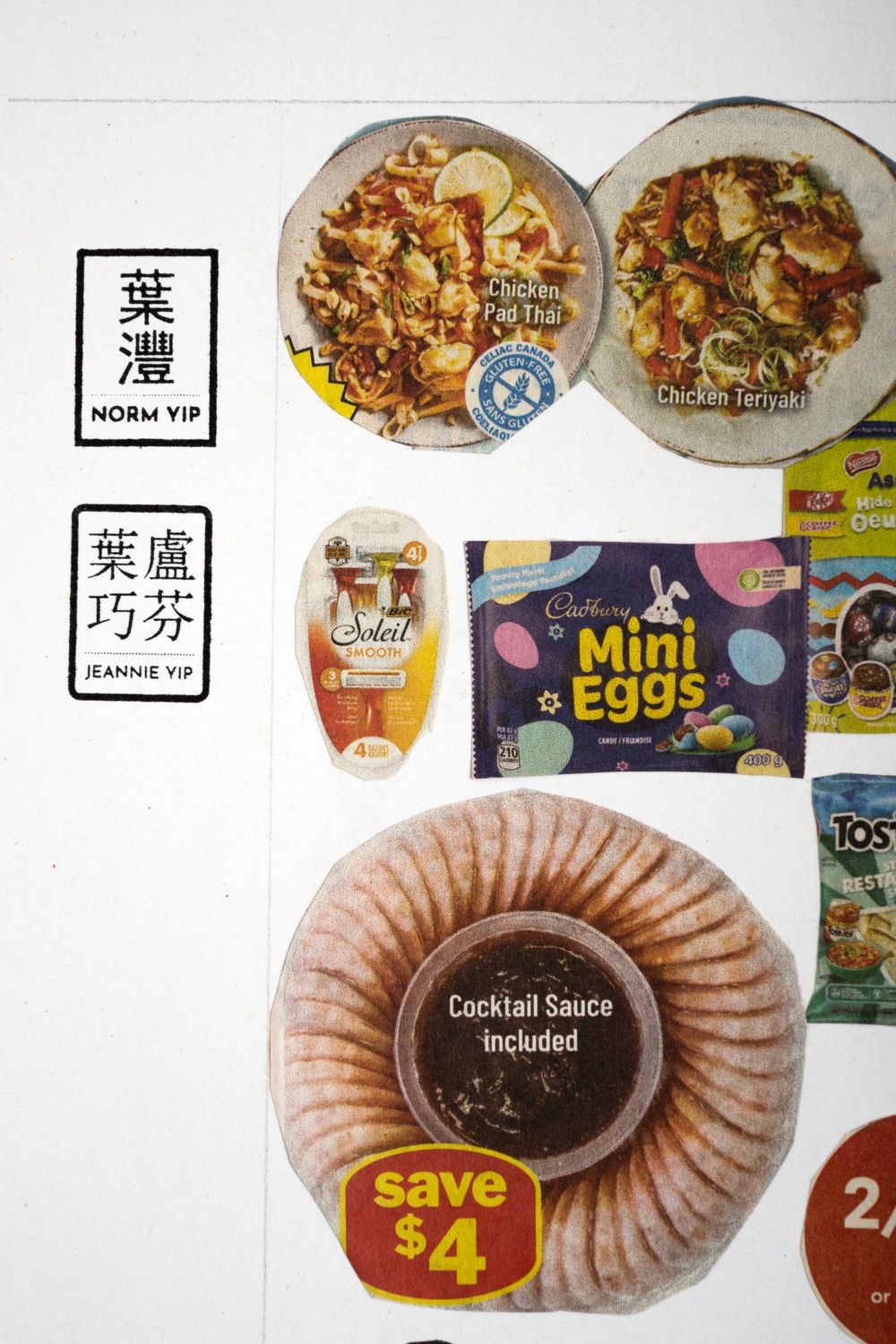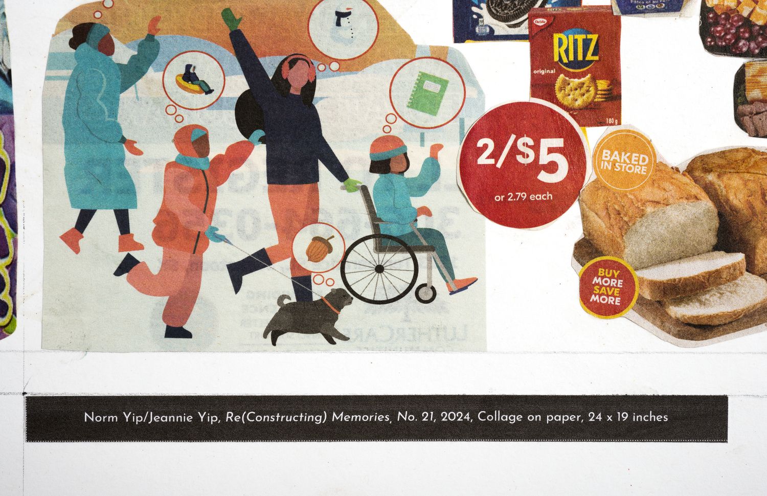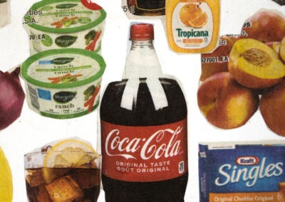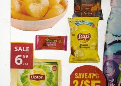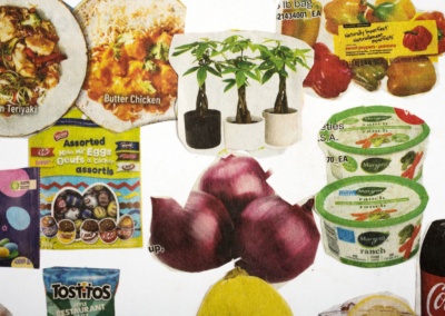 A collaborative art project to facilitate active engagement with my 85 year-old mother who has Alzheimer’s’ disease. She was tasked with cutting out clippings from local flyers and pamphlets while I assembled and pasted the pieces onto art paper. For more on the project, please visit Connecting and Collage with Mom, Despite Alzheimer’s.