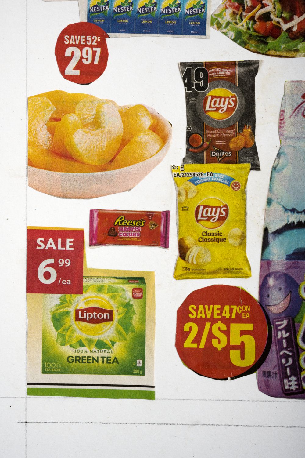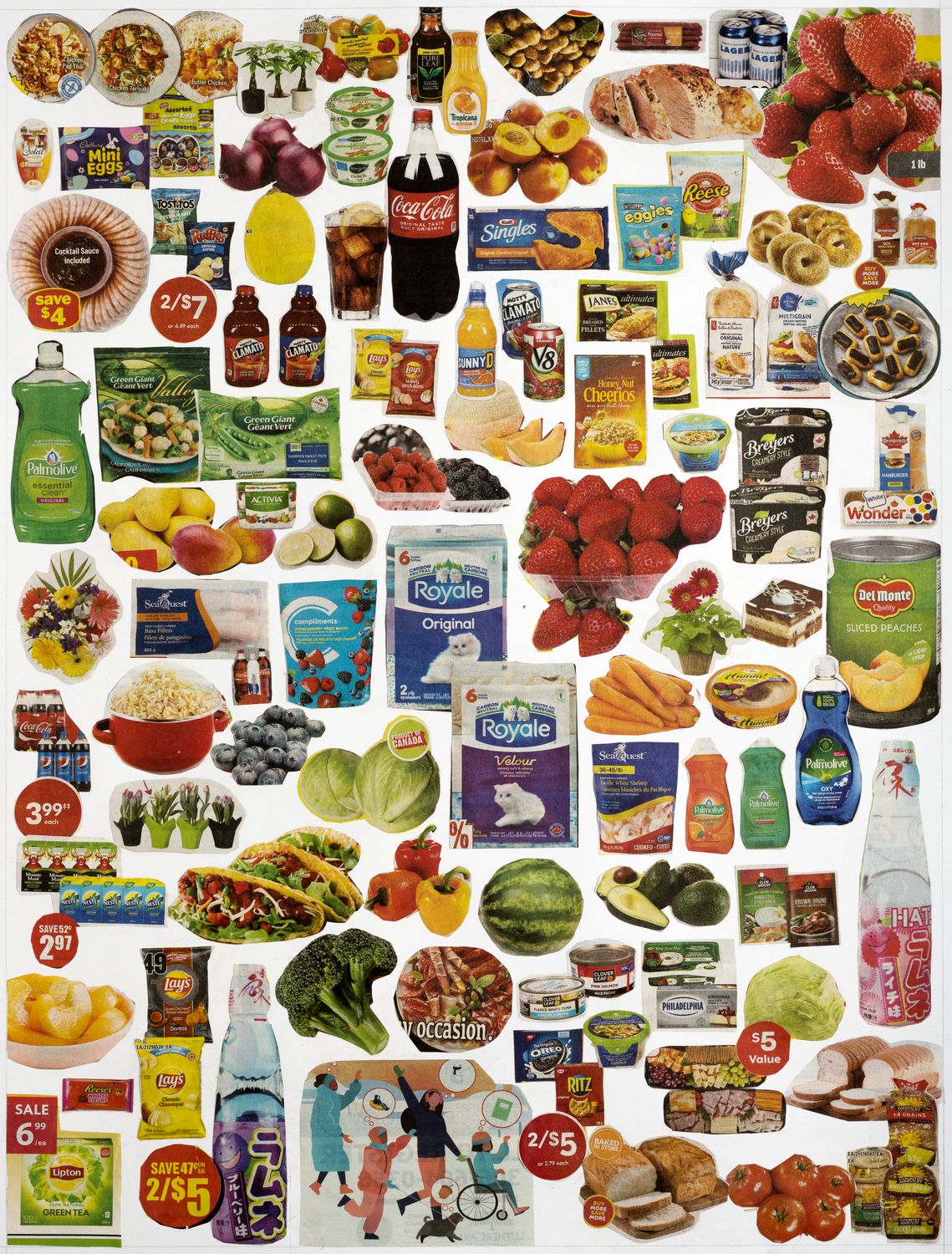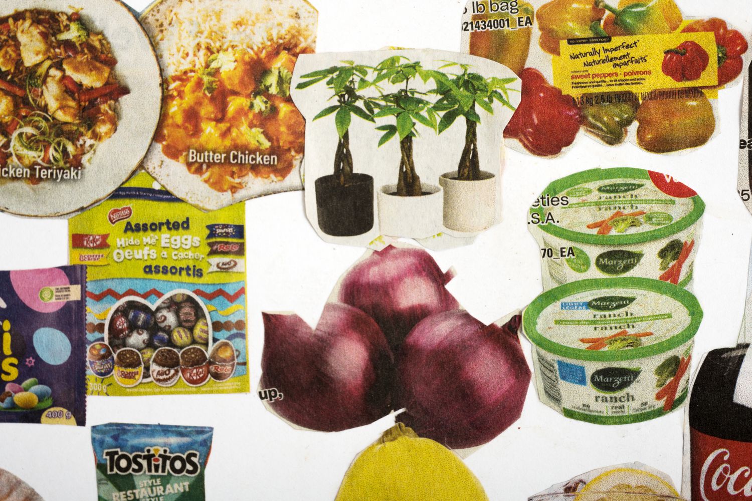 A collaborative art project to facilitate active engagement with my 85 year-old mother who has Alzheimer’s’ disease. She was tasked with cutting out clippings from local flyers and pamphlets while I assembled and pasted the pieces onto art paper. For more on the project, please visit Connecting and Collage with Mom, Despite Alzheimer’s.