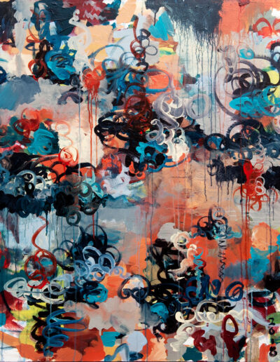 The earlier works in this series, including Le tourbillon de la vie, are rooted in a more purely abstract language — energetic, unresolved, and deliberately open. As the series progressed, I found myself compressing and tightening the composition, introducing a sense of depth and space without fully committing to it.